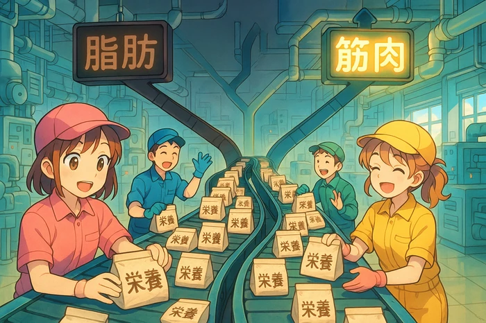 まさに、栄養素が脂肪細胞という「倉庫」ではなく、筋肉という「建設現場」に優先的に直送されるルートが出来上がるのです。