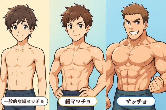ここでは、目指すべき体を明確にするために、「マッチョ」を3つのレベルに分けて具体的に解説します。
