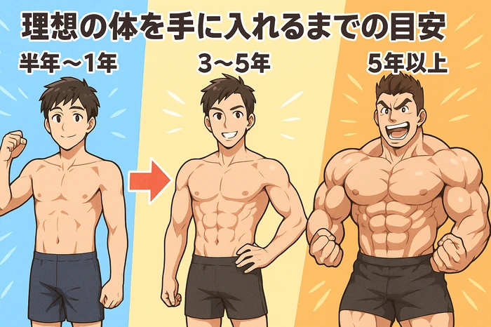 コンテスト出場も視野に入るような、全身の筋肉が美しく発達した「細マッチョの上位互換」を目指すには、3年から5年という期間が一つの目安になります。